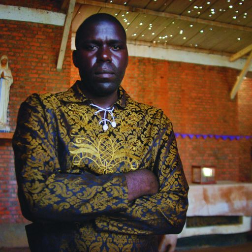Silas, a former soldier, inside Nymate church where some 15,000 Tutsi where killed during the 1994 genocide.
