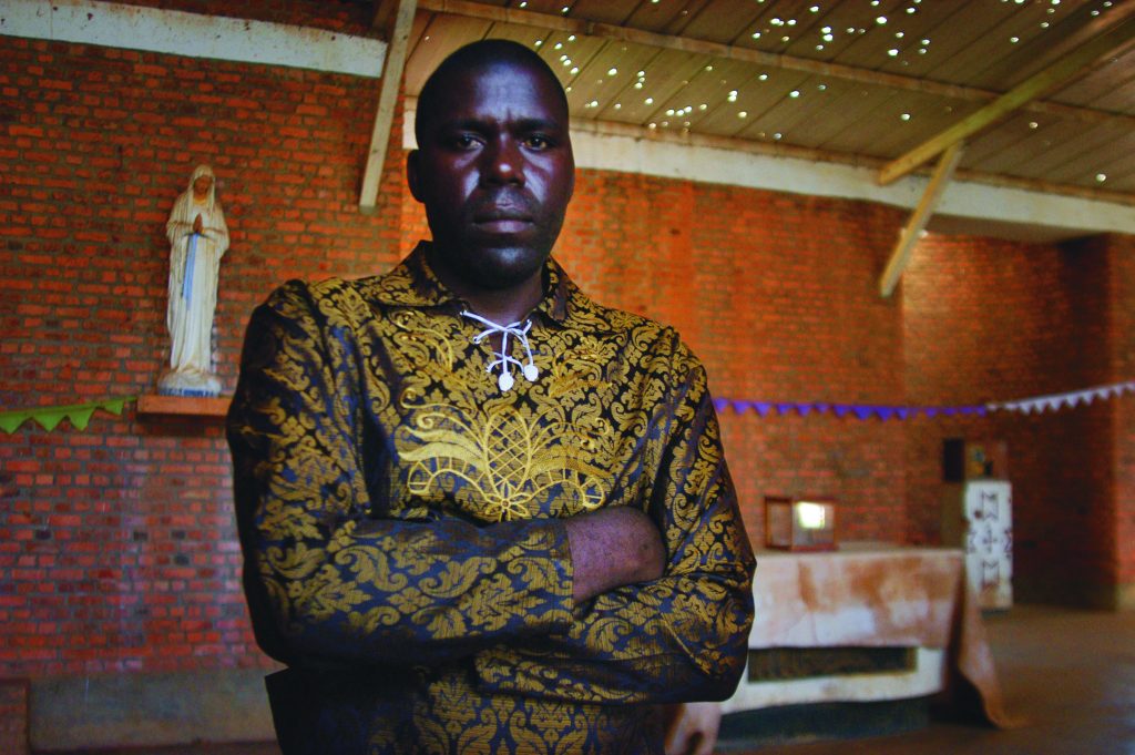 Silas, a former soldier, inside Nymate church where some 15,000 Tutsi where killed during the 1994 genocide.